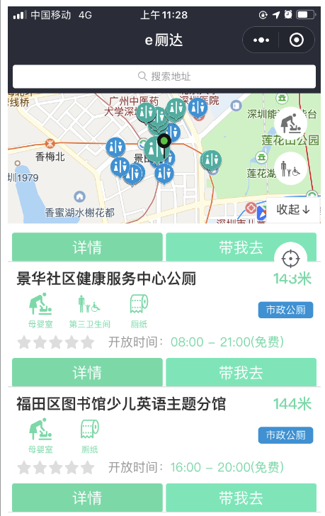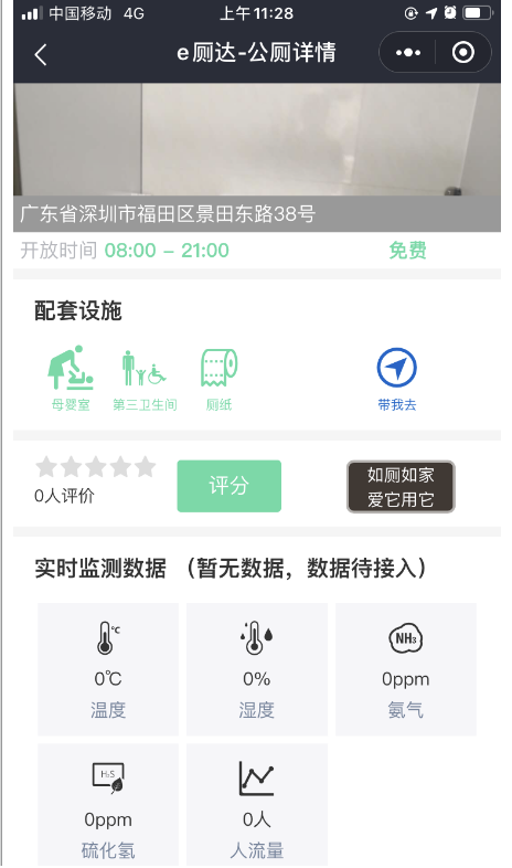 第二個功能是查看廁所情況。如果市民想知道廁所是否爆滿,有沒有母嬰室,衛(wèi)生情況如何,點擊任意廁所可查看每座公廁的詳細情況。