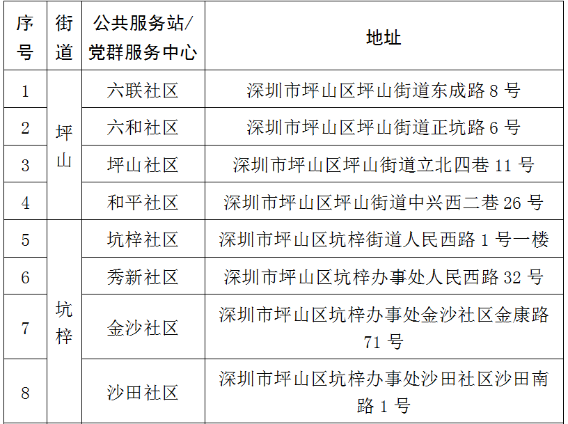 進(jìn)駐的社區(qū)公共服務(wù)站(黨群服務(wù)中心)名單