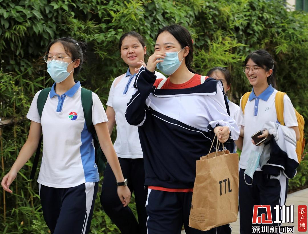 深圳高級(jí)中學(xué)考點(diǎn)外考生腳步輕盈走出考場(chǎng),有說有笑。