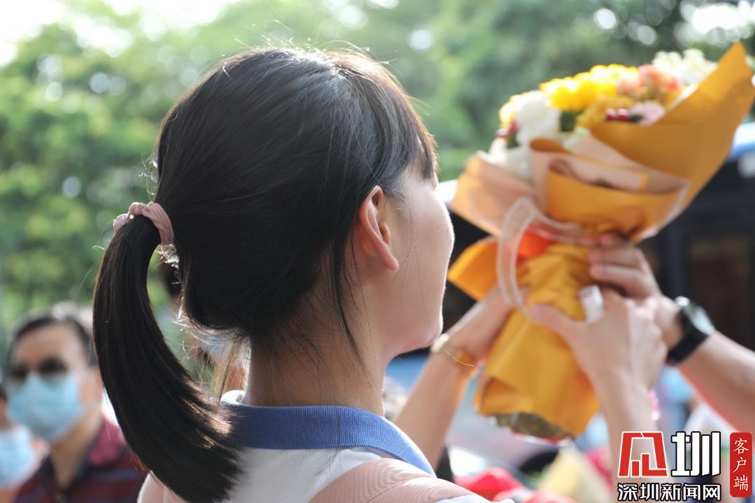 深圳高級中學(xué)考生走出考場收到父母鮮花。