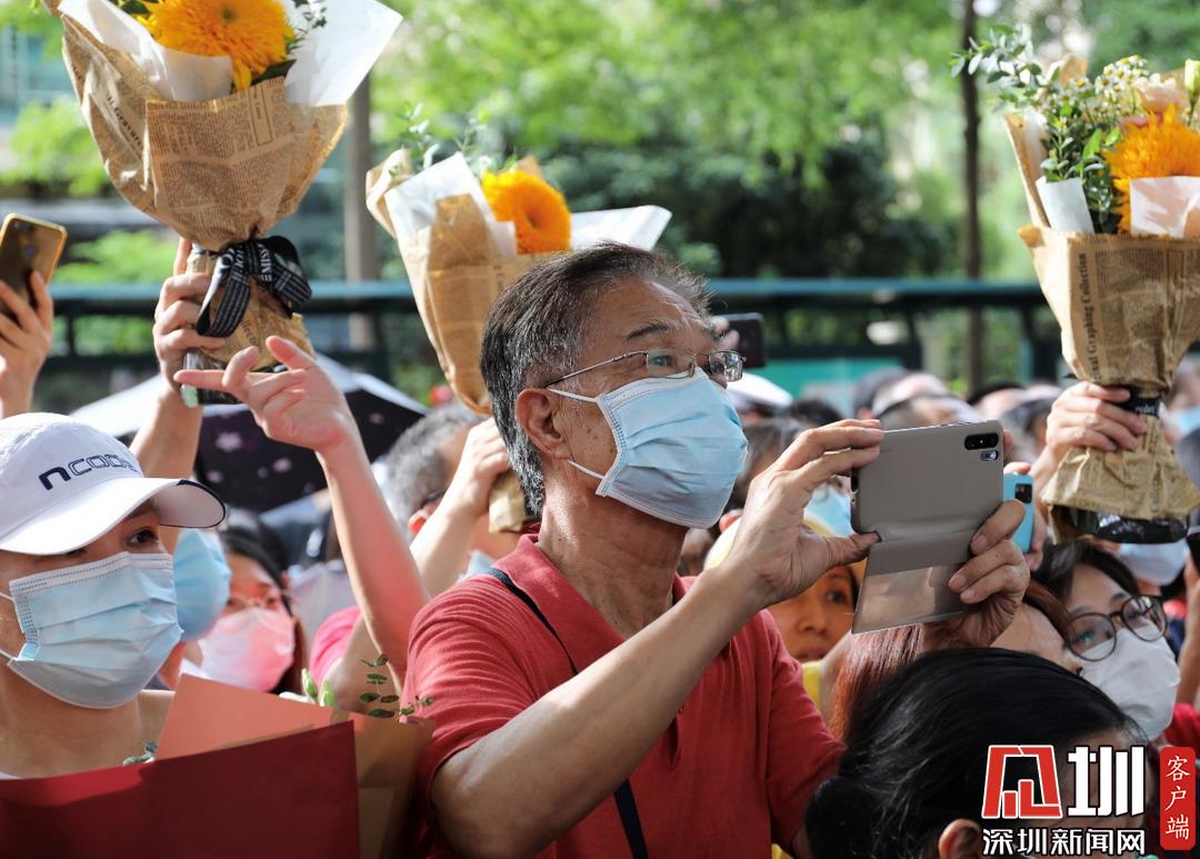 深圳高級中學(xué)考點(diǎn)外家長耐心守候,等待記錄特別時(shí)刻。