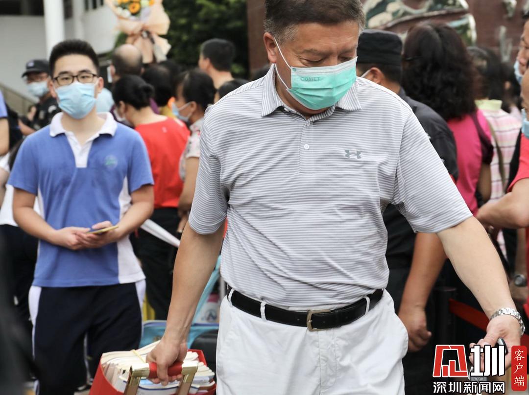考點(diǎn)外父親幫助兒子搬書(shū)歸家。