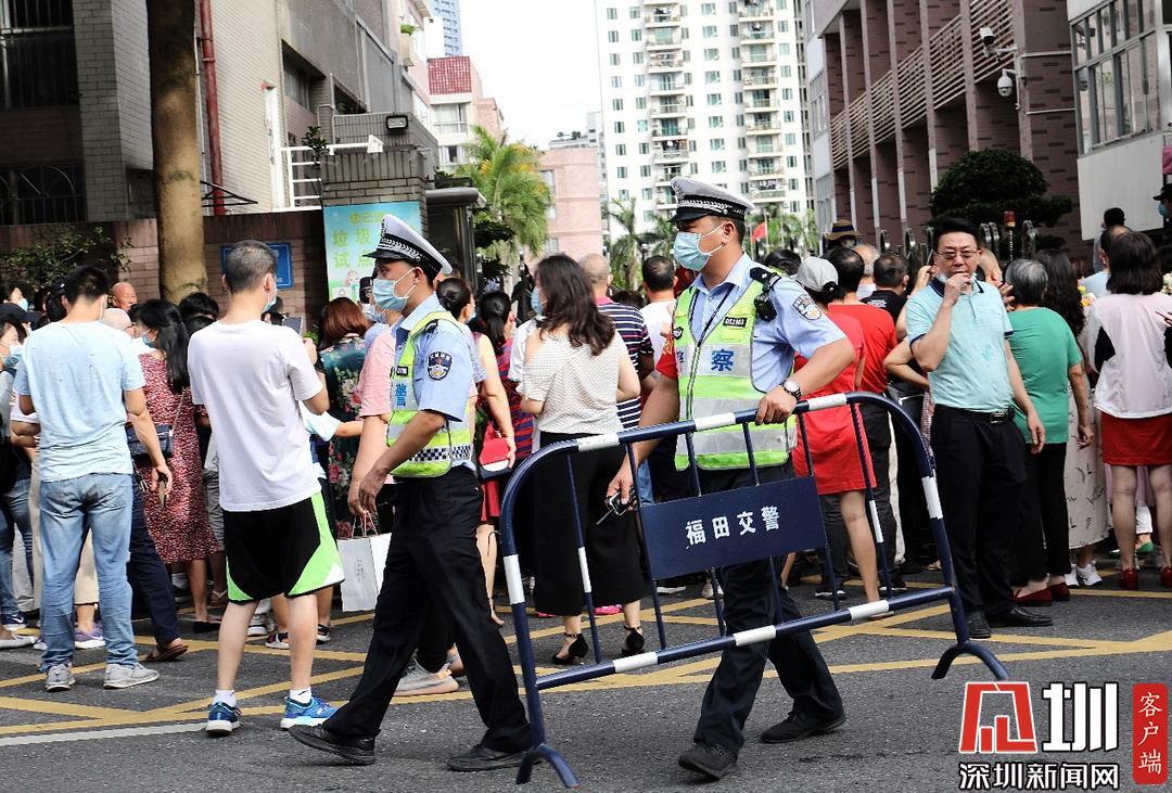 深圳高級中學(xué)考點外,福田交警加強周邊道路巡邏管控。