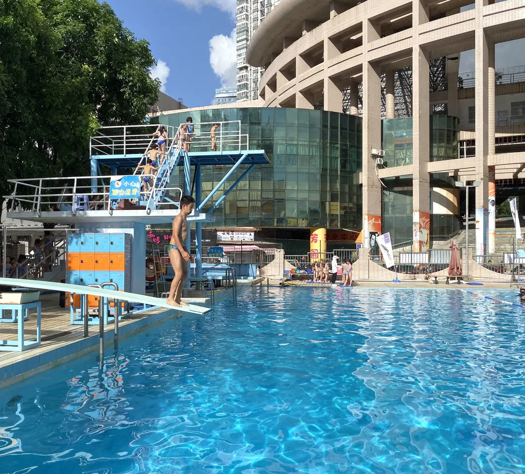 ▲南油小學(xué)跳水隊(duì)在南油游泳場(chǎng)訓(xùn)練。消息報(bào)記者 曹燚煒 攝