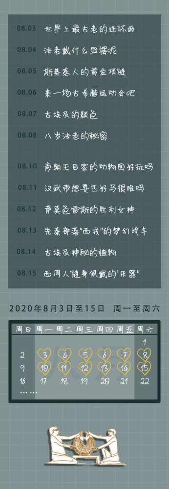 小小博物家,這個夏天我們從古埃及到古中國,為漢武帝尋馬,拜訪八歲的埃及法老,追尋最古老的連環(huán)畫……與傳統(tǒng)課堂不同,小小博物家十二講,營造充滿互動性的“沉浸式”課堂。