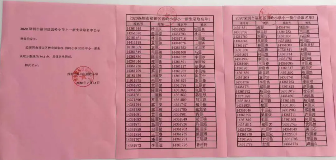 2020年福田區(qū)公辦小一新生錄取名 ...