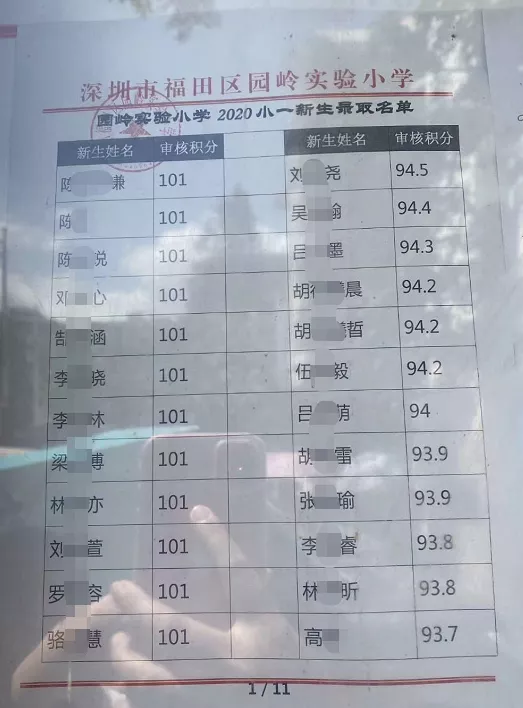 2020年福田區(qū)公辦小一新生錄取名單來(lái)了,部分學(xué)校最低錄取積分曝光
