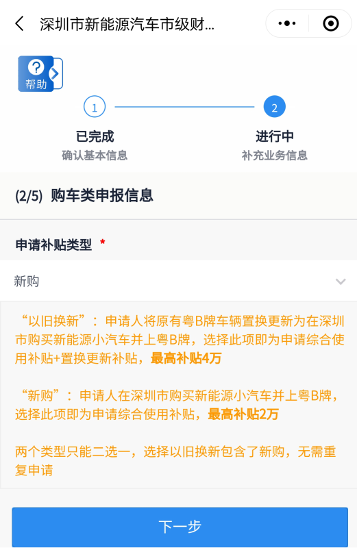 客戶只需選擇一種補貼類型,“新購”和“以舊換新”兩種類型無需重復(fù)申請。