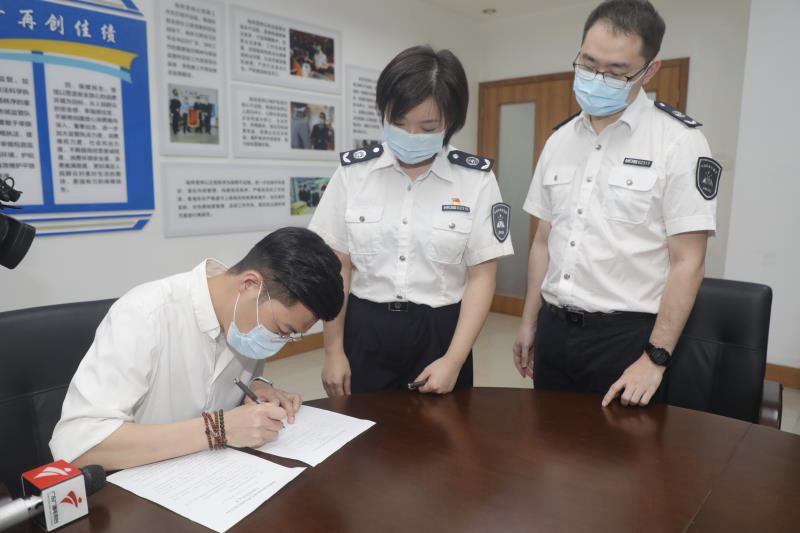 在深圳市市場監(jiān)督管理局南山分局粵海所,記者看到企業(yè)法人現(xiàn)場接受行政處罰決定書,對于違法行為,該負責人表示“已經(jīng)進行整改”。