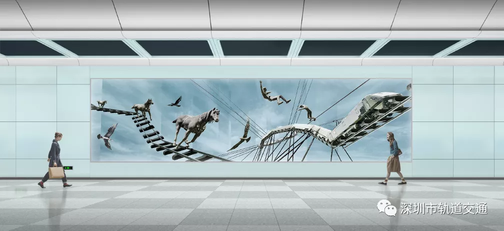 該站文化藝術墻以瓷板為材質,通過火車軌道、雄鷹、馬等元素結合,呈現(xiàn)出現(xiàn)代城市的多種元素,將城市、生態(tài)和科技的完美結合。