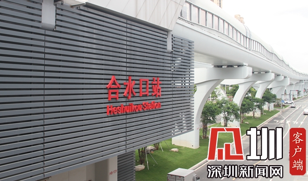 合水口站位于光明區(qū)合水路與碧水路之間的松白路上,沿松白路路中呈東西向敷設(shè)。西接薯田埔站,東接公明廣場站。站廳B端設(shè)置公共衛(wèi)生間(含殘疾人衛(wèi)生間),車站站廳設(shè)1個(gè)客服中心,站臺為島式站臺。合水口站為地面三層高架站,共設(shè)出入口4個(gè):A口、B口、C口、D口。其中,A口位于松白路東北側(cè),為科學(xué)館方向公交接駁口;B口位于松白路西北側(cè),為主要緊急出入口;C口位于松白路輔路西南側(cè),為備用緊急出入口;D口位于松白路輔路東南側(cè),為松崗方向公交接駁口。
