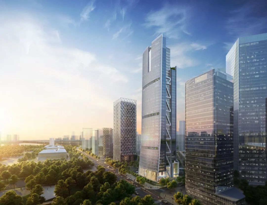 項目坐落于寶安中心區(qū),塔樓整體采用了流線化的錐體造型,輔以結構元素作為立面肌理,垂直線條和自下而上逐漸收分的曲線相結合,形體優(yōu)雅大方,富有活力,既可保證辦公布局的高效性,又能滿足讓塔樓主導天際線的設想,充分體現(xiàn)世界領先衛(wèi)星科技企業(yè)的創(chuàng)新精神。