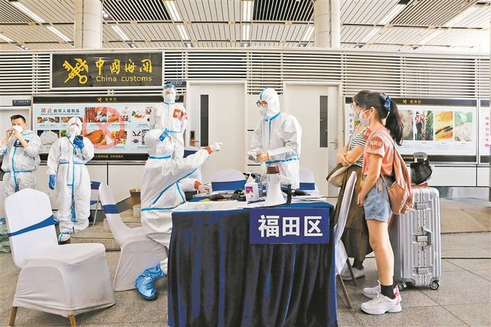 深圳灣口岸,按規(guī)定需要集中隔離醫(yī)學(xué)觀察的入境旅客在工作人員的帶領(lǐng)下分區(qū)搭乘巴士前往隔離點(diǎn)。(來源:深圳特區(qū)報(bào))