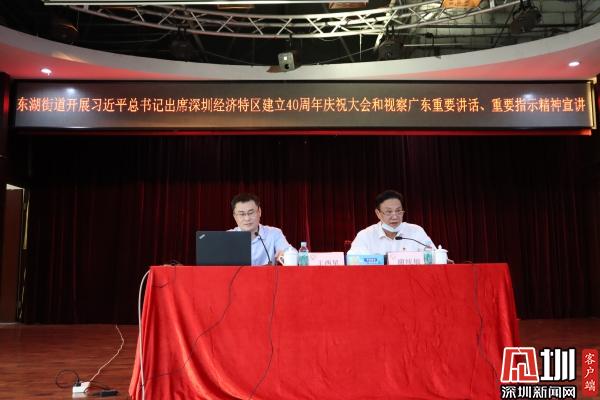 見圳客戶端·深圳新聞網(wǎng)11月26日訊(記者 劉晨 通訊員 魏官明 陳惠冰)11月26日下午,深圳市羅湖區(qū)東湖街道舉行習(xí)近平總書記出席深圳經(jīng)濟特區(qū)建立40周年慶祝大會和視察廣東重要講話、重要指示精神宣講報告會,活動特邀羅湖區(qū)委宣講團成員、區(qū)發(fā)展研究中心黨組書記、主任王西星作主題宣講。 街道黨政領(lǐng)導(dǎo),街道各辦、中心業(yè)務(wù)負責(zé)人,各社區(qū)黨委書記、副書記,股份公司董事長,街道機關(guān)各黨支部及各社區(qū)黨建組織員、黨員共100余人參加了宣講活動。活動由街道黨工委副書記、人大工委主任謝統(tǒng)敏主持。