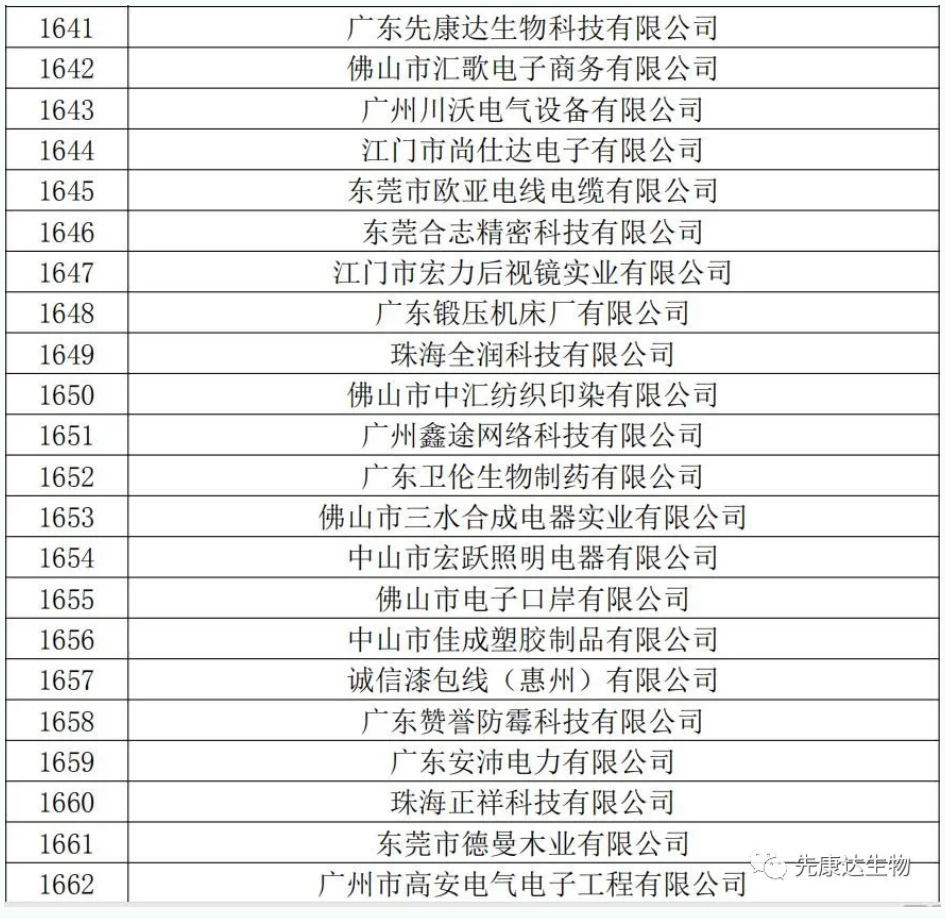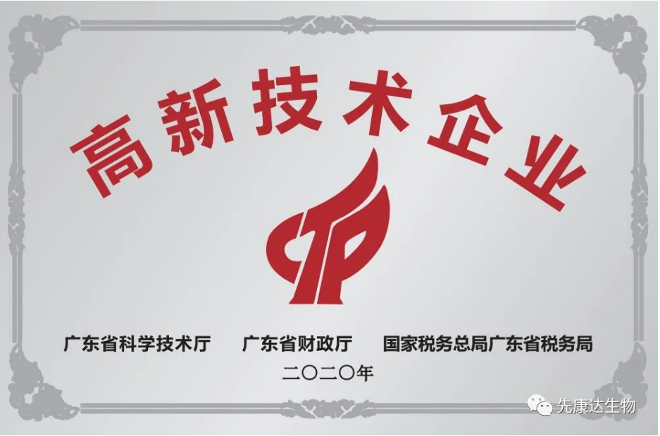 近日,廣東省科技廳公布廣東省2020年度第一批國家高新技術(shù)企業(yè)名單,廣東先康達生物科技有限公司赫然名列其中,這標(biāo)志著先康達生物邁上一個更大的臺階。