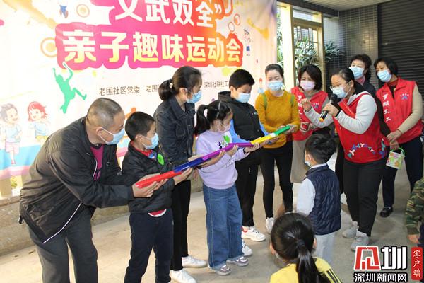 見圳客戶端·深圳新聞網(wǎng)2月1日訊(記者 劉嘉敏 通訊員 楊紀歐)今年過年不回家,要玩就在社區(qū)玩?!耙蛉攵础薄靶◎蝌秸覌寢尅薄傲璨ㄎ⒉健薄皩殞氈嘎贰边@些又好聽又好玩的游戲,是羅湖區(qū)桂園街道老圍社區(qū)黨群服務中心的社工為社區(qū)居民精心準備的。1月30日上午,社區(qū)為鼓勵社區(qū)居民留深過年,專門開展了一場“文武雙全”親子趣味運動會,吸引了眾多小朋友及其家長,12對親子來到現(xiàn)場。