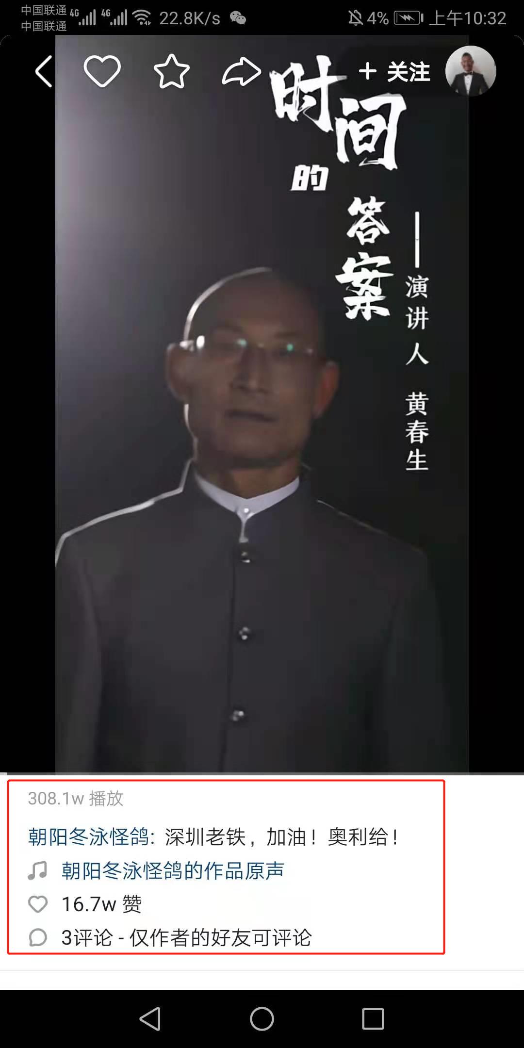 而奧利給大叔快手賬號中,給深圳獻詩的視頻播放量已超300萬!獲贊達16萬!