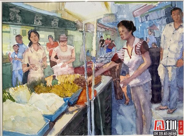據(jù)了解,《東門這地方》展覽以東門景觀為題材,創(chuàng)作者中不乏地地道道的東門原住民,通過藝術(shù)畫作的形式詮釋和表達東門的歷史文化。出生在東門,求學(xué)也在東門的張躍侖在接受記者采訪時表示,因為自己就是土生土長的東門人,所以對東門的感情深厚,希望通過類似活動,來實現(xiàn)“本土文化的本土表達”,也希望能引起許多老深圳人對東門的回憶,讓更多人認識東門的格局。其中他提到,此次畫展的亮點增加了不少畫家在去年疫情的時所作的作品,以自己的所見所聞,表達對東門生活的新認知。