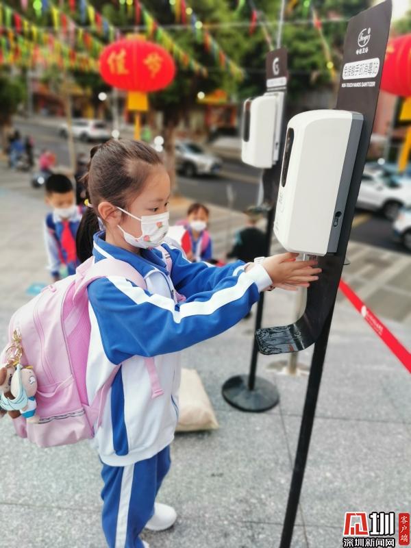 松泉實(shí)驗(yàn)小學(xué),孩子們主動洗手消毒。