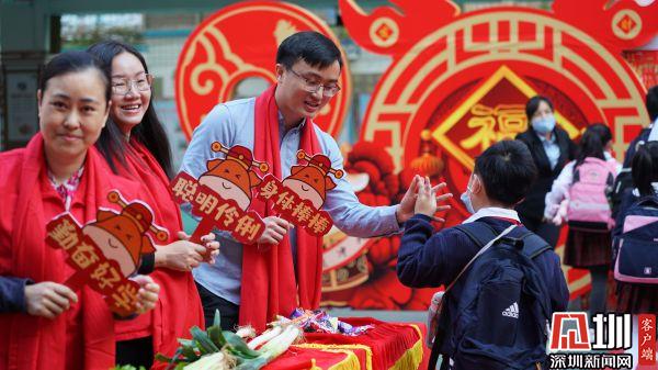 湖貝小學(xué)的老師及家長代表為學(xué)生送上寓意美好的新春祝福。
