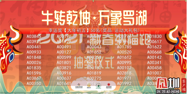 除夕、正月初二、正月初五、正月初八、元宵節(jié)五次隨機(jī)抽取幸運(yùn)者如下: