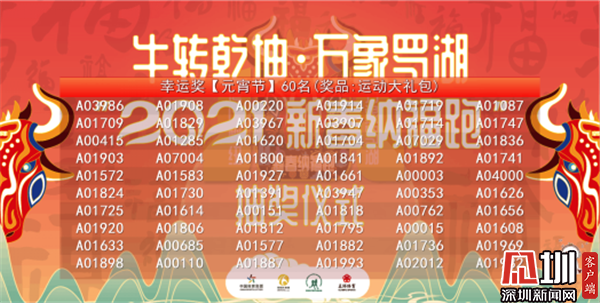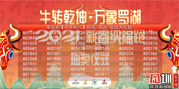 值得一提的是,本次活動(dòng)不限地域、不限時(shí)間,不僅得到了羅湖市民的熱捧,也得到了深圳各個(gè)區(qū)域和深汕特別合作區(qū)的市民積極參與,讓新春的福氣遍布深圳。春節(jié)假期期間,在深圳的各個(gè)公園和綠道都能看到市民運(yùn)動(dòng)的身影,同時(shí)為了鼓勵(lì)留深人員,積極參與活動(dòng),組委會(huì)精心準(zhǔn)備了200余份運(yùn)動(dòng)大禮包,分別在除夕、正月初二、正月初五、正月初八、元宵節(jié)分五次隨機(jī)抽取幸運(yùn)者獲得運(yùn)動(dòng)大禮包。