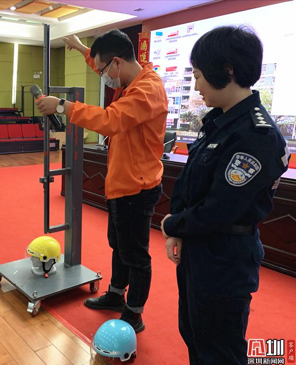 針對目前頭盔佩戴率的問題,羅湖交警充分調(diào)動社會資源,聯(lián)合深圳曉安頭盔公司,現(xiàn)場講解頭盔在事故中對頭部的保護(hù)作用,為同學(xué)們演示在重力撞擊的情況下,有頭盔保護(hù)和沒頭盔保護(hù)的不同結(jié)果,讓現(xiàn)場同學(xué)們親身感受到頭盔的重要意義,還免費向同學(xué)們贈送頭盔。