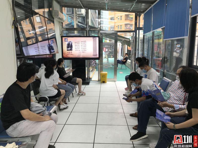 羅湖醫(yī)院集團翠嶺社康中心疫苗接種留觀區(qū)域轄區(qū)居民觀看《為了新中國,我愿付出一切》。