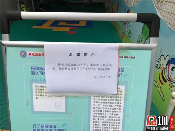 見圳客戶端·深圳新聞網(wǎng)4月7日訊(記者 彭桂紅 劉晨)“因新冠疫苗供應不足,本接種點暫停服務,重新開放接種服務另行告知。敬請諒解!——東門社康中心。”4月6日,記者在羅湖區(qū)東門社康中心看到,該社康貼出了疫苗暫時供應不足的告知。記者隨后走訪了其他幾個接種點,一些社康也紛紛貼出了類似溫馨提示。記者了解到,除羅湖外,其他區(qū)的接種點也出現(xiàn)了類似“缺苗”現(xiàn)象。對此,記者采訪了羅湖區(qū)衛(wèi)健局,相關負責人表示,這段時間轄區(qū)新冠病毒疫苗接種率大幅提升,目前缺苗只是暫時性的,正在加強調(diào)配,隨時可能到苗,請大家耐心等待,同時留意相關提示。