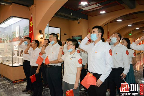 參觀活動結(jié)束后,全體成員進行了重溫入黨誓詞環(huán)節(jié)。在鮮紅的黨旗下,黨員們舉起右拳,在羅湖區(qū)委宣傳部二級調(diào)研員李文威的帶領(lǐng)下莊嚴宣誓,大家仿佛又看到了自己第一次站在莊嚴的黨旗下宣誓的樣子:“我志愿加入中國共產(chǎn)黨,擁護黨的綱領(lǐng),遵守黨的章程……”一聲聲鏗鏘有力的入黨誓詞在博物館中回響。