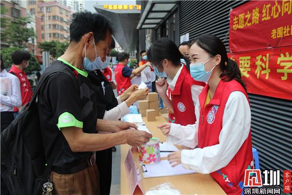 在現(xiàn)場(chǎng)服務(wù)的義工中,林哲妮是其中一員,她剛從外地旅游回來,放下行李就直接到了宣傳現(xiàn)場(chǎng)。林哲妮在這個(gè)社區(qū)生活多年,認(rèn)識(shí)的人很多,看到她就說:“又出來做義工了?”并自覺接過她手中的宣傳資料。在旁邊樓宇上班的陳曉甜女士就受了林哲妮的影響,也表示可以就近做義工,還幫兩個(gè)同事也報(bào)了名,并當(dāng)場(chǎng)掃社區(qū)志愿者群,加入志愿者的行列。