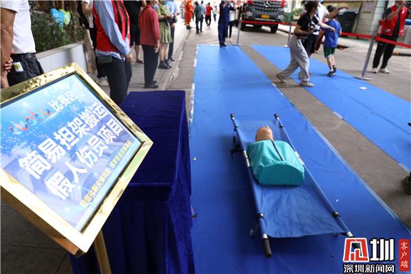 活動(dòng)現(xiàn)場(chǎng),宣傳教育區(qū)、技能展示區(qū)、互動(dòng)體驗(yàn)區(qū)、趣味比賽區(qū)等人頭攢動(dòng),不時(shí)傳來陣陣贊嘆聲、歡呼聲。來自羅湖區(qū)森防大隊(duì)、消防救援大隊(duì)的隊(duì)員們,向群眾講解無人機(jī)、液壓切割機(jī)、消防機(jī)器人等救援設(shè)備、裝備,演示森防油鋸速切木頭、風(fēng)力滅火機(jī)吹磚頭等等比武項(xiàng)目;居民體驗(yàn)使用干粉滅火器;美國(guó)心臟協(xié)會(huì)AHA導(dǎo)師向居民示范教學(xué)心肺復(fù)蘇急救。趣味比賽區(qū)專門設(shè)置了防汛沙袋搬運(yùn)、疊放競(jìng)速、簡(jiǎn)易擔(dān)架搬運(yùn)假人傷員、4*20M消防水帶接力等獨(dú)具防災(zāi)減災(zāi)特色的趣味比賽項(xiàng)目,吸引了眾多社區(qū)居民積極參與。