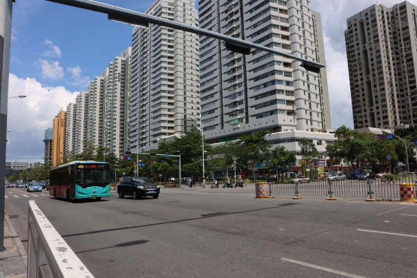 黃貝街道區(qū)域處于城市中心,受建筑密集和受地形影響,在炎熱的夏季有較為明顯的“熱島效應(yīng)”,時間才到上午,街道中已經(jīng)是熱浪滾滾。