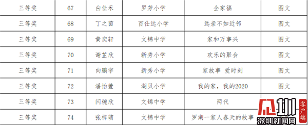 見圳客戶端·深圳新聞網(wǎng)2021年6月1日訊(記者 李慧)6月1日,羅湖區(qū)“家庭文明公益廣告”及“我家年度故事”征集活動獲獎名單公布,其中,18個(gè)“家庭文明公益廣告”和74個(gè)“年度故事”圖文作品獲獎。