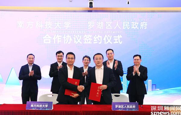 讀特客戶端·深圳新聞網(wǎng)2021年7月19日訊(記者 劉嘉敏)7月16日,羅湖區(qū)人民政府與南方科技大學(xué)(以下簡(jiǎn)稱“南科大”)簽署合作協(xié)議。羅湖區(qū)常務(wù)副區(qū)長(zhǎng)范德繁、南科大校長(zhǎng)辦公會(huì)成員王蘇生分別代表羅湖區(qū)、南科大簽約。南科大校長(zhǎng)薛其坤,市委組織部副部長(zhǎng)張林,市委組織部部務(wù)委員、市人才工作局局長(zhǎng)鄧曉俊,羅湖區(qū)委書記羅育德,區(qū)委副書記、組織部部長(zhǎng)、政法委書記賴武共同見證。
