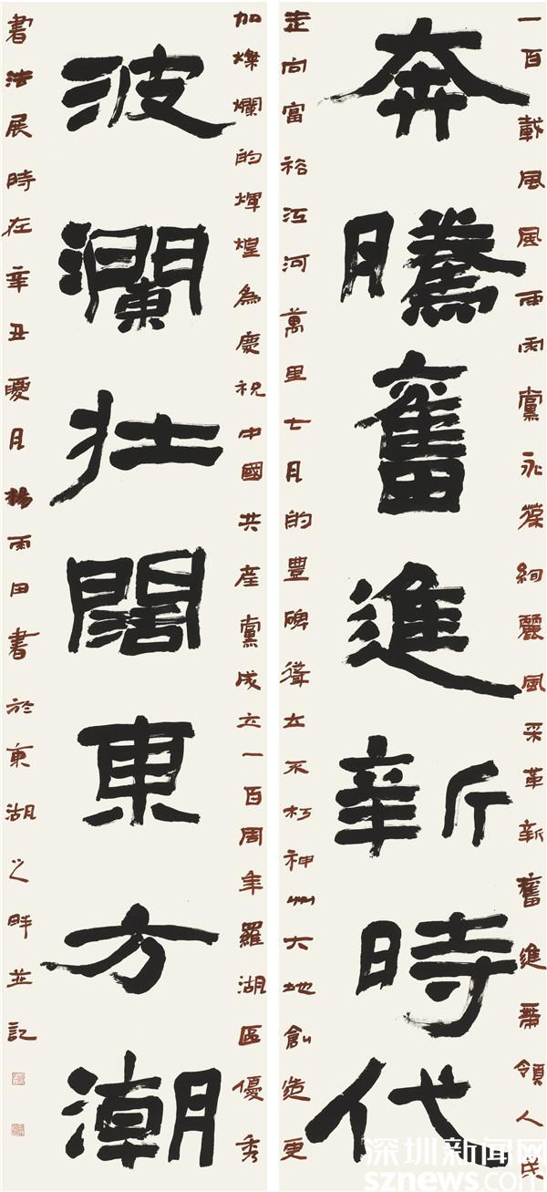 梁宇對(duì)此次展覽表示充分肯定并表示,此次展覽,羅湖區(qū)以書(shū)法的形式來(lái)慶祝中國(guó)共產(chǎn)黨百年華誕,通過(guò)書(shū)法的形式來(lái)謳歌、體現(xiàn)黨的這一百年的光輝歷程。同時(shí),書(shū)法家們通過(guò)各種書(shū)體來(lái)體現(xiàn)藝術(shù)家對(duì)黨的濃濃情感,也通過(guò)作品呈現(xiàn)出了聽(tīng)黨話(huà)、跟黨走的一種精神面貌。