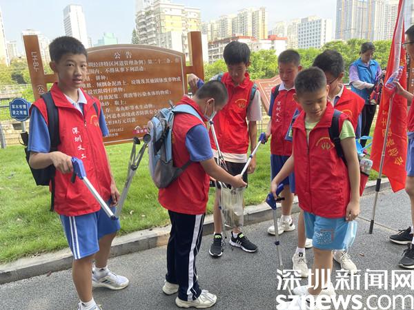 來自全市的50名學(xué)生志愿者在深圳市羅湖區(qū)東益環(huán)保志愿者協(xié)會會長陳燕紅的帶領(lǐng)下,從東門迎賓廣場出發(fā),步行到布吉河?xùn)|門段的結(jié)尾。一路上,學(xué)生們身著“紅馬甲”,化身志愿者,每到一處地方都對周邊的垃圾進行了清理,在夏日呈現(xiàn)出了一道最美的風(fēng)景線。