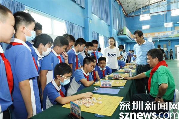 讀特客戶端?深圳新聞網(wǎng)2021年10月10日訊(見習(xí)記者 鐘林 通訊員 凌玲)10月10日上午,羅湖濱河實驗中學(xué)內(nèi)“狼煙四起”,一片激烈景象,原來,是呂欽、蔣全勝、柳大華、莊玉庭和曹巖磊5位象棋大師齊聚校園,和55名學(xué)校師生共同開展2021年粵港澳大灣區(qū)(深圳)象棋邀請賽暨濱河實驗中學(xué)象棋大師進校園“車輪戰(zhàn)”表演賽。