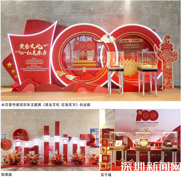 水貝壹號(hào)作為多家上市珠寶公司的總部基地,石妍說,作為黃金珠寶行業(yè)發(fā)展的見證者和實(shí)踐者,水貝壹號(hào)始終堅(jiān)持以黨建為重要抓手,弘揚(yáng)光榮傳統(tǒng)、賡續(xù)紅色血脈,為熱烈慶祝中國共產(chǎn)黨成立100周年,回顧中國共產(chǎn)黨波瀾壯闊的奮斗歷程,熱情歌頌建黨百年的輝煌業(yè)績,從7月1日始至10月31日止為期100天,推出以“黃金文化紅色東方”為主題的系列展覽活動(dòng),展覽內(nèi)容包括“1921年一大南湖紅船”滌蕩百年文創(chuàng)作品展、“三?!本裎膭?chuàng)作品展、《深圳八景》金箔剪紙藝術(shù)展等,獻(xiàn)禮建黨百年華誕。每天吸引大批慕名而來的黨員和市民圍觀打卡,近5000余人次到場參加,媒體曝光傳播10萬余次。