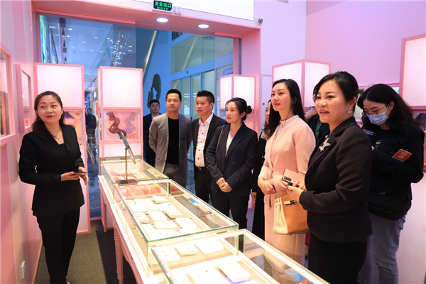本次活動中,人大代表們還走進(jìn)商場品牌門店、網(wǎng)紅店與消費(fèi)者互動。代表們走進(jìn)周大生珠寶參股品牌大生美門店,被為大生美設(shè)計(jì)的星座極光大師系列作品所吸引目光。在翠綠門店,代表們對金箔制成的千里江山圖贊不絕口?!敖鸩谱鞒蓴?shù)米長的畫,這個(gè)工藝實(shí)在是高?!贝韨冊谝慌愿袊@道。