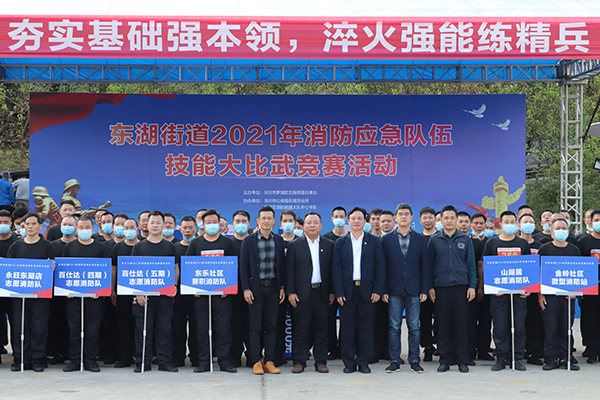 讀特客戶端·深圳新聞網(wǎng)2021年11月25日訊(記者 邱婕 通訊員 范漢林)為夯實幸福街區(qū),生態(tài)東湖基礎(chǔ),營造安全有序的居住環(huán)境,切實增強轄區(qū)居民群眾的獲得感、幸福感和安全感,11月25日,東湖街道在翠湖公園廣場舉行“2021年消防應(yīng)急隊伍技能大比武競賽活動”。區(qū)消防救援大隊副大隊長胡巒,街道黨工委副書記、人大工委主任謝統(tǒng)敏,街道黨工委委員、辦事處副主任、應(yīng)急管理辦主任方海峰,街道黨工委委員、城市建設(shè)辦主任楊曉明,街道辦事處副主任、綜合行政執(zhí)法辦主任李旭,東湖派出所副所長張金偉等領(lǐng)導(dǎo)和街道相關(guān)業(yè)務(wù)部門、社區(qū)工作站、各物業(yè)管理小區(qū)及兼職消防隊伍等相關(guān)人員參加了活動。街道轄區(qū)各物業(yè)管理單位、村股份公司及轄區(qū)重點企業(yè)26支應(yīng)急消防隊伍,共230余名隊員參加了比賽。