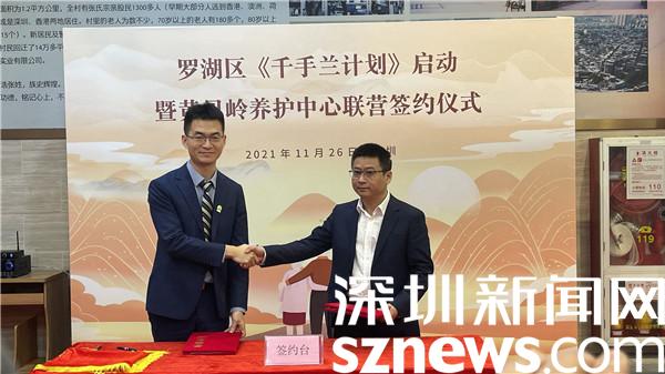 儀式開始,黃貝嶺股份公司和深圳福壽康有限公司簽訂聯(lián)營合作協(xié)議。同時,福壽康公司宣布為羅湖區(qū)百歲長者開展“沐浴愛河”——入戶助浴公益活動,免費為羅湖區(qū)27名百歲老人上門提供助浴服務。
