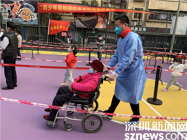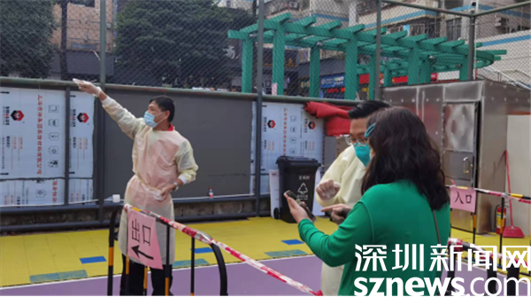 由于樓宇建設(shè)年代久遠,基礎(chǔ)設(shè)施較為落后,核酸檢測點設(shè)在新村社區(qū)僅有的一個籃球場空地上。羅湖區(qū)審計局下沉干部與社區(qū)黨委精心謀劃,按照“隔離檢測、分流進場、專崗專人”的原則,在長28米、寬15米的小方陣里,搭起了6條核酸檢測通道,按照引導(dǎo)員、計數(shù)員、掃碼員、講解員等不同職能,重構(gòu)了檢測流程,定人定崗“流水線”工作,迅速提升了檢測效率。