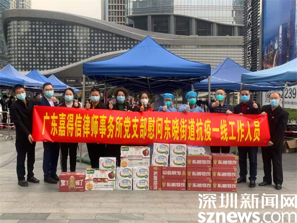 1月10日下午,深圳市人大代表、廣東嘉得信律師事務(wù)所主任閔齊雙來到獨樹社區(qū)IBC核酸檢測點慰問抗疫一線工作人員,送上牛奶、功能特飲及水果等慰問品,向奮戰(zhàn)在一線人員致敬和感謝,表示將全力做好一線人員關(guān)愛和后勤保障工作,齊心協(xié)力打贏這場硬仗。