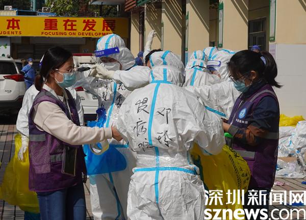 臘八節(jié)剛過,深圳帶著些許涼意,卻也是艷陽高照。“同志們,相互檢查一下手腕腳腕有沒有貼好!穿戴整齊后準(zhǔn)備集結(jié)出發(fā)啦!”在封控區(qū)外圍的醫(yī)護(hù)人員整備區(qū),一群身穿防護(hù)服、全副“武”裝的工作人員整裝待發(fā),兩人一組,目光堅(jiān)定,向著封控區(qū)的入口走去。