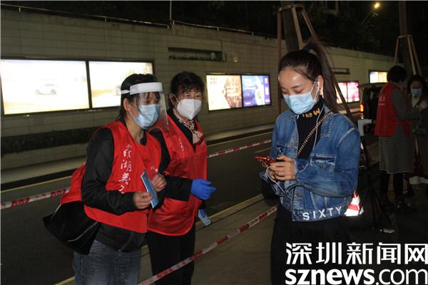 “楊妹,我來了,還帶來了一個(gè)人?!?3日晚,正在羅湖區(qū)桂園街道老圍社區(qū)禧程酒店核酸檢測(cè)點(diǎn)忙碌的社工楊女士,接到志愿者溫寶珍的電話。溫寶珍從“0107疫情”開始以來,每天都在核酸檢測(cè)點(diǎn)協(xié)助核酸檢測(cè),這晚她把自己的兒媳婦吳永霞也帶來了?!捌牌艅倧钠渌鐓^(qū)的核酸檢測(cè)點(diǎn)做完義工回來,聽說老圍社區(qū)需要人,放下飯碗就來了。婆婆這么大年紀(jì)了還沖在前面,我做兒媳婦的,怎么也要向婆婆學(xué)習(xí)啊?!眳怯老紝?duì)社工說?!皯?yīng)該的應(yīng)該的,疫情當(dāng)前,每個(gè)人都有義務(wù)出來與病毒作戰(zhàn),光是靠社區(qū)工作者不行,他們太累了。”溫寶珍邊說邊幫兒媳穿好義工服,把粵核酸的二維碼交給兒媳,并教兒媳如何在手機(jī)上查驗(yàn)。