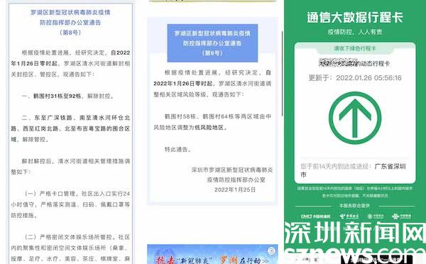 讀特客戶端·深圳新聞網(wǎng)1月26日訊(記者 覃鈺清)1月25晚,羅湖區(qū)新型冠狀病毒肺炎疫情防控指揮部辦公室發(fā)出通告,通告指出,自2022年1月26日零時起,羅湖區(qū)清水河街道解封相關(guān)封控區(qū)、管控區(qū),同時調(diào)整羅湖區(qū)清水河街道鶴圍村58棟、鶴圍村64棟等兩區(qū)域由中風險地區(qū)調(diào)整為低風險地區(qū)。調(diào)整后,深圳市全域均為低風險地區(qū),不再執(zhí)行“持48小時核酸陰性證明離深”管控措施。