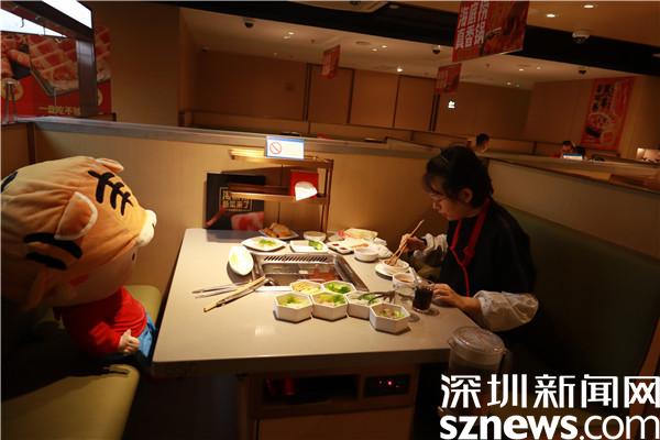 冬季是火鍋消費(fèi)的旺季,在用餐高峰期,位于深圳市羅湖區(qū)這家連鎖火鍋店里,可見(jiàn)門口顯眼處貼著“半份菜 滿份愛(ài)”的海報(bào),店內(nèi)還有光盤行動(dòng)等標(biāo)語(yǔ),還有一名光盤行動(dòng)倡導(dǎo)員在餐廳內(nèi)不時(shí)給消費(fèi)者溫馨提示,倡導(dǎo)顧客適量點(diǎn)餐。