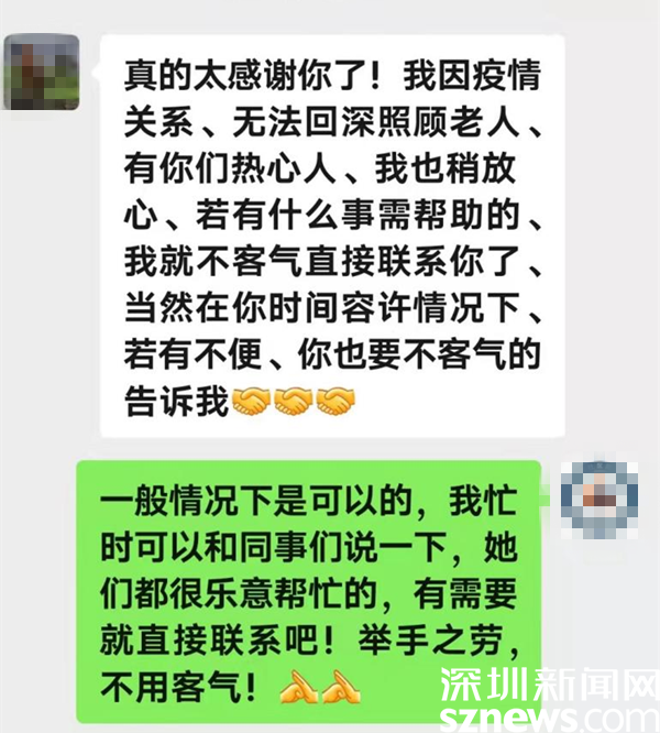 原來,“紅馬甲”是老圍社區(qū)網(wǎng)格員劉珍蓮,她陪老人李曉萍來做核酸檢測。檢測順利結(jié)束,老人一激動,就抱著劉珍蓮哭了起來。事后,老人的兒子,身在香港的溫先生給劉珍蓮發(fā)來微信,說:“非常感謝你帶我媽去做核酸檢測,我媽都感動到哭了?!?/p>