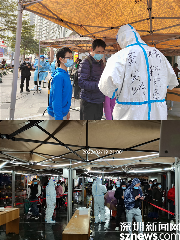 自今年“0107”疫情發(fā)生以來,洪天飛就成了休息“絕緣體”——除完成南粵家政的日常工作外,其余時間都當(dāng)起了志愿者,積極參與社區(qū)疫情防控工作,甚至春節(jié)期間也主動放棄假期、放棄與家人團聚時光,把團聚轉(zhuǎn)移到了防疫一線,和社區(qū)工作人員一起起早貪黑,一起經(jīng)歷風(fēng)雨寒凍,一起應(yīng)急出動,從核酸采樣點布置場地、維持現(xiàn)場秩序、引導(dǎo)掃碼到上門“掃樓”收集住戶信息等工作中,處處可見他的身影。